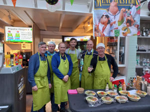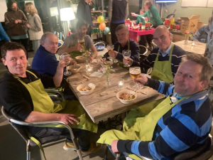 Zaterdagavond konden zowel deelnemers als niet-deelnemers op de club eten. De altijd enthousiaste kookploeg van Pim, Alex, Peter, Rob, Richard en Enri had overheerlijke pokébowls klaargemaakt in een vlees-, vis- en vegavariant. Maar liefst 67 mensen smulden hiervan.