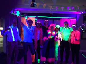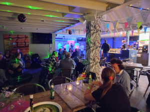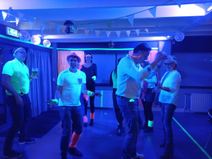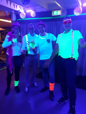Naast inspanning stond er ook ontspanning op het programma. Vrijdagavond was er een feestavond met als thema NEON. Het clubhuis was versierd met neonvlaggetjes en -ballonnen en er was een heuse dansvloer met blacklight en discolampen. De organisatie had lekker felle kleding en accessoires aangedaan en ook een aantal deelnemers had zich aan een felgekleurde outfit gewaagd.