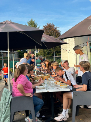 De rood/oranje middag, verzorgd door de tennisschool, was een waar hoogtepunt. Onze jongste tennissers straalden op de baan en zorgden voor een energieke start van de week.