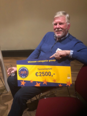 Woensdagavond mocht het Tennismaatjes-team, onder leiding van bedenker en oprichter Arthur Tutein Nolthenius, de hoofdprijs van € 2.500 ophalen bij de Zeister Vrijwilligersprijs 2025 in het Torenlaan Theater. Een enorme eer en meer dan verdiend!